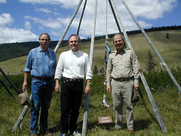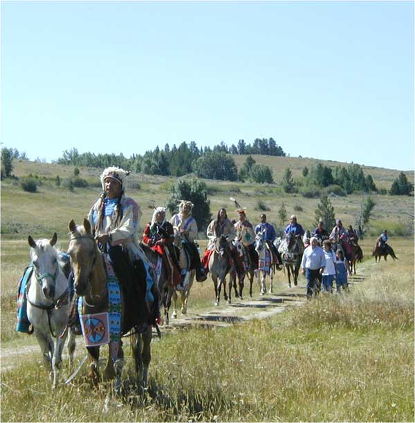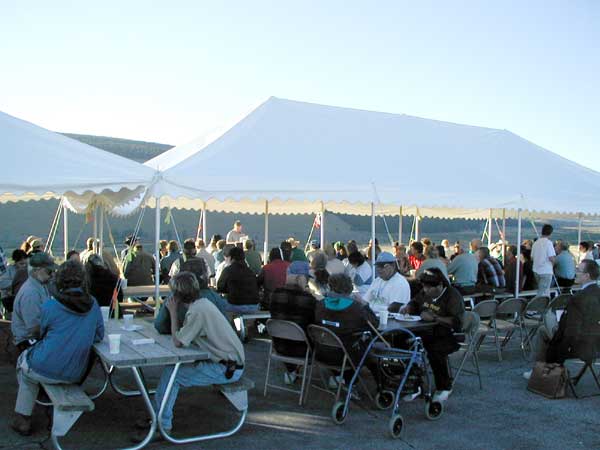 Big Hole National Battlefield Commemorates the 125th AnniversaryThe commemorative events to remember the 125th anniversary of the Battle of the Big Hole were held August 9-11, 2002 at the Big Hole National Battlefield. The weather was perfect with clear blue skies and crisp nights. The first Montana snow of the season had fallen over the mountains days before the event creating a picture perfect backdrop. Descendents of battle participants from both sides of the fight were present for the three-day event. A dinner in their honor was given the evening of the 9th, hosted by former Superintendent Jon James. Jerry Greene, Friends’ Advisory Board member and author of Nez Perce Summer 1877, made a presentation about the battle. The guests were also privileged that evening to attend the premier of the new NPS documentary about the battle, "Wéet’u Ciklíitukt, There Is No Turning Back." The following morning opened with the Nez Perce pipe ceremony at the site of the village. As the crowd gathered they soon noticed, approaching from the hills, the Nez Perce Appaloosa Horse Club dressed in their best regalia. It was an incredible site. Throughout the three days there were many other events such as Nez Perce storytellers, pitching tipis and soldier shelters, ranger-led tours throughout the battlefield, food (Indian tacos and fry bread), and bugle call demonstrations. The highlight, by far was the 10:00 P.M. – 12:00 A.M. candle light vigil of August 9. For the first time in 125 years there was light, in the middle of the night, in the Nez Perce village. 160 luminaries were placed along the path through the village to remember all the wounded and killed from both sides. Walking through the village with only candles to light the trail was a once in a lifetime experience. And the view from the vantage point high above at the visitor center looking toward the village below was quite a site. It was a great circle of soft light. Below we present a few photos of the events. We hope you enjoy them. Photos © Bob Reece