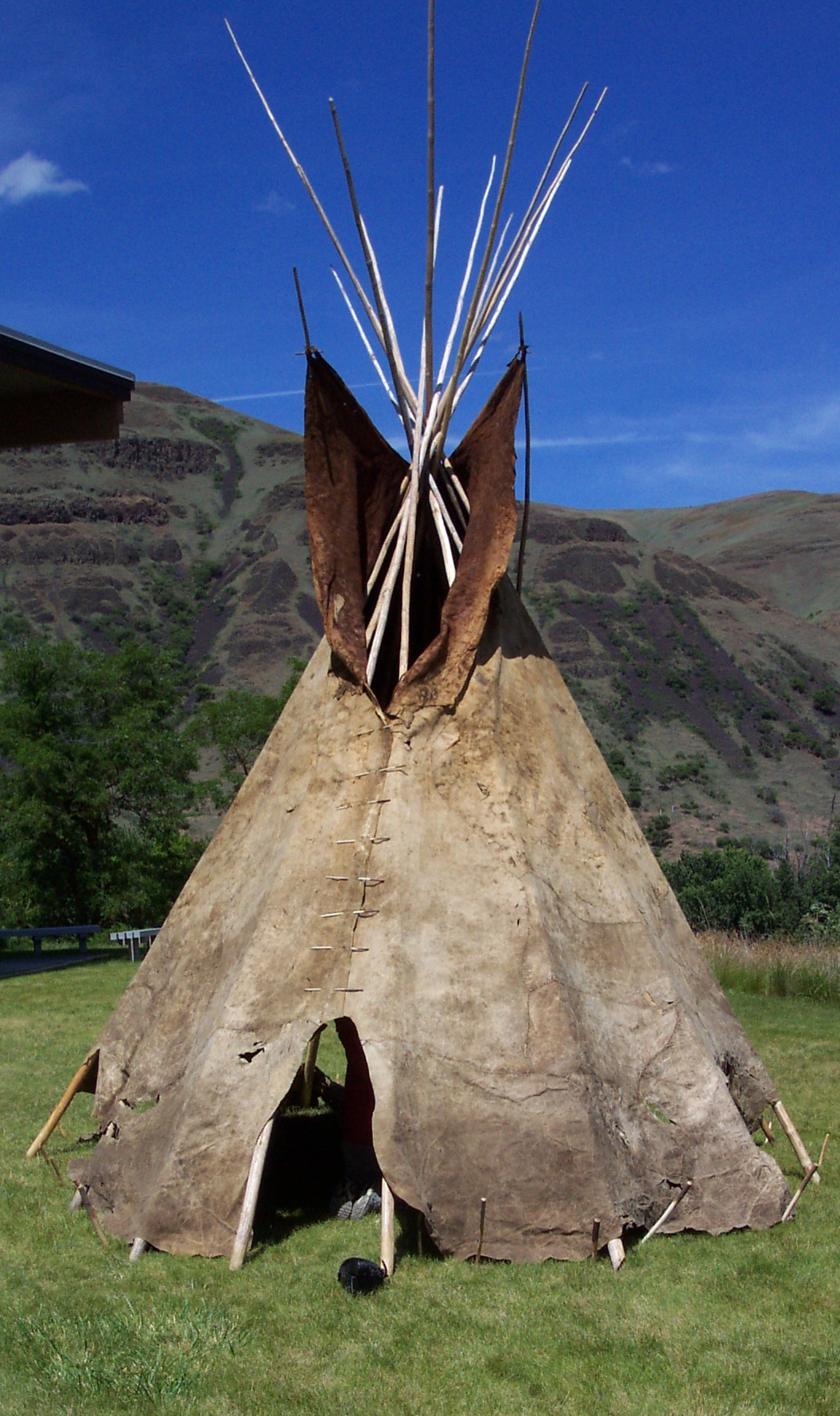 raised the rare hide dwelling, one of the few extant buffalo hide tipi's