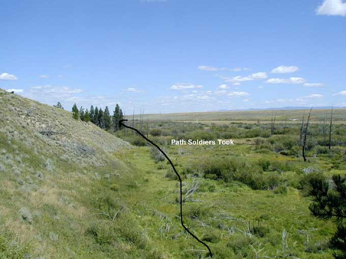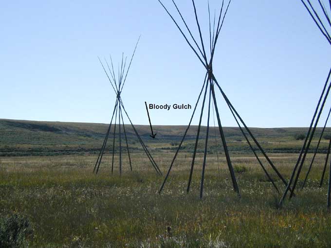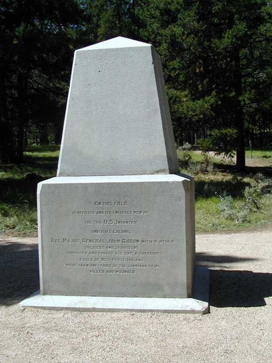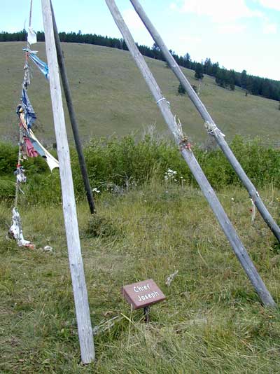 Picture 1 looks north--On August 7, 1877 the Nez Perce under the leadership of Looking Glass entered the Big Hole Valley and made camp. The Nez Perce knew this area from years of passing through on the way to hunt the buffalo. The Nez Perce numbered about 800 people with other leaders including Joseph and White Bird. Picture 2 looks SW--They raised 89 tipis, placed their horse herds on the hill to the west of the camp and settled in. Looking Glass told his people that they were safe here. Col. John Gibbon (whose troops found the Custer dead on June 27, 1876) and about 160 soldiers and officers marched out of Ft. Shaw to intercept the Nez Perce. Passing through the Bitterroot Valley, Gibbon acquired an additional 34 civilian volunteers. Gibbon found the Nez Perce camp just after midnight August 9. Picture 3 looks north--Moving in the dark, the soldiers prepared to attack the sleeping village from the banks of the North Fork of the Big Hole River. Suddenly, a lone Nez Perce, Hahtalekin, met them on his way to the horse herd. A shot rang out and Hahtalekin fell dead. Picture 4 looks south--The first line of soldiers opened fire on the tipis, firing low as they stumbled in the dark through the river. The camp awoke with screaming women and children, many dying instantly in their tipis. Thick willows along the riverbank broke the soldier’s formation. Captain Logan’s Company “A” immediately moved into the battle at the southern end of the village as the Nez Perce warriors fired back. There was hand-to-hand fighting, screaming, gunfire and smoke in the dark. Looking Glass and White Bird encouraged the men to fight. Picture 5 looks west--Some warriors took up sniper positions in trees and with deadly aim inflicted heavy casualties in the soldier’s ranks. Picture 6 looks west--Site of Joseph's tipi. Sniper Trees can be seen on the hill behind the tipi. Picture 7 looks south--Gibbon realized he was losing the fight for the village and pulled his men back across the river into a clump of trees about 400 yards from the village. Picture 8 looks south--Gibbon’s soldiers quickly dug rifle pits in what is today called the Siege Area. Pictures 9 & 10 look east--Signs of the rifle pits can still be seen today. As the women and children came back to their village, the soldiers could hear them grieving as they buried their loved ones. Making its way slowly behind the soldiers was the one 12-pounder mountain howitzer. Only one soldier had combat experience in firing the howitzer. They managed to fire two shots when the Nez Perce warriors came upon them and took the howitzer. The warriors dismantled the howitzer and rode off with 2,000 rounds of carbine ammunition. Jump here for photos at the howitzer site. Picture 12 looks east--Gibbon’s soldiers were hit with accurate fire from snipers along the banks and from the hills above them. This is Battle Gulch which provided the warriors covered access to fire on the soldiers. Picture 13 looks north--As the day progressed the soldiers were in need of food and water (they brought none with them for the attack). The night of August 9 volunteers crept down to the river with canteens to bring water back to the wounded. Picture 14 looks east--The morning of August 10, warriors kept up their fire as their families and wounded moved east from the battlefield. They carried their wounded through this ravine called Bloody Gulch. Picture 15 looks north--Only a handful of snipers kept the soldiers and volunteers pinned in their rifle pits. Eventually, all the Nez Perce were gone. Gibbon suffered 29 dead and 40 wounded during the two-day fight. The Nez Perce lost about 90 people in the attack on the village. The Nez Perce continued their flight across Montana and Wyoming, even traveling through Yellowstone National Park. They would finally surrender after the Battle of the Bear’s Paw Mountains in October 1877. Picture 16--In 1883 a granite monument was placed in the Siege Area over the buried soldiers of Gibbon’s command. Visiting the Big Hole Battlefield is a moving experience. You can walk along the river to the village site as well as visit the Siege Area. It’s hard to imagine all the death that happened in such a beautiful, pristine place—but it did. |